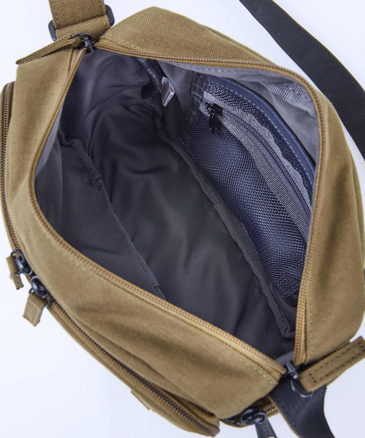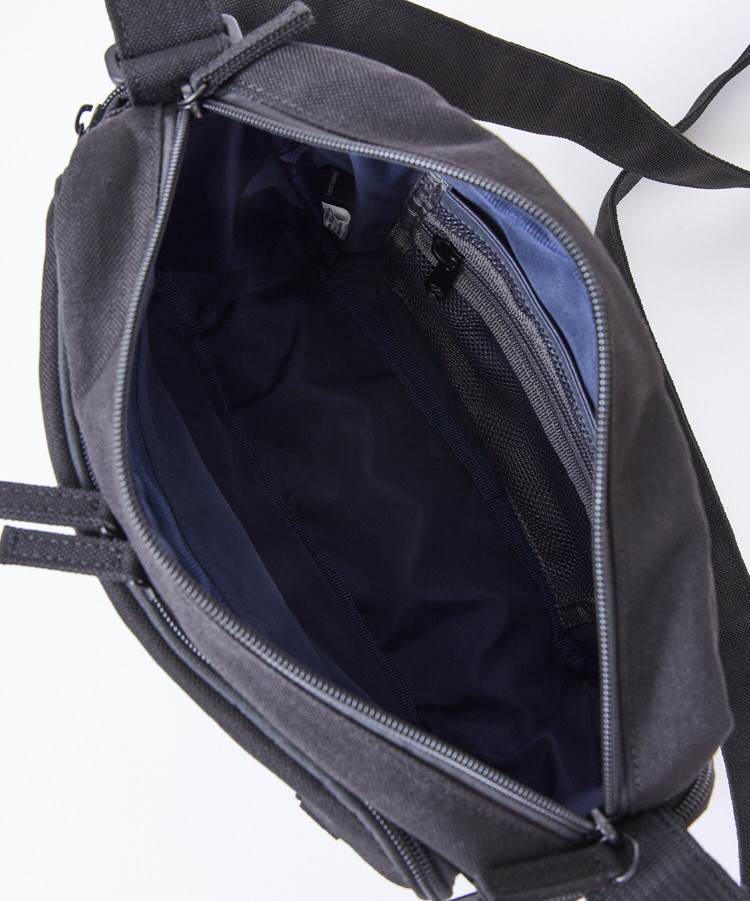 A compact yet highly functional shoulder bag. The main compartment fits A5-sized items and includes a spacious mesh pocket for organization.