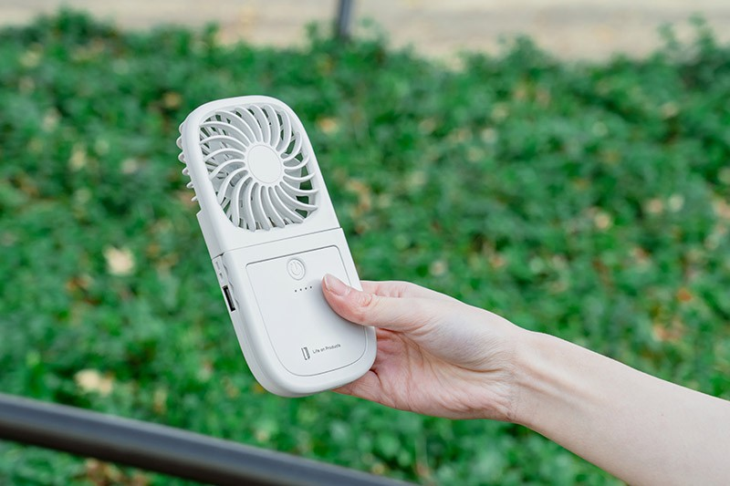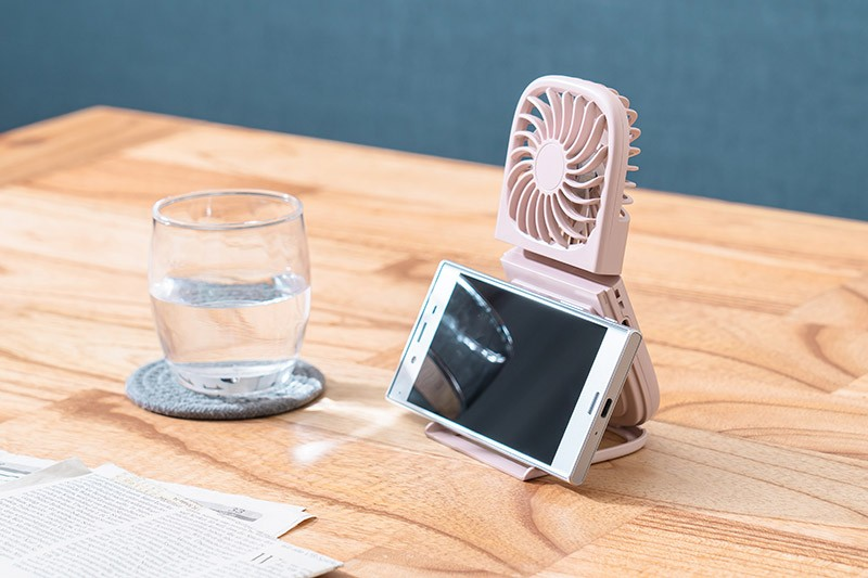 This is a 5-way hands-free fan that can be used not only as a handy fan or on a desktop, but also for outdoor activities or desk work, with a mobile stand, hands-free function, and mobile battery function.
