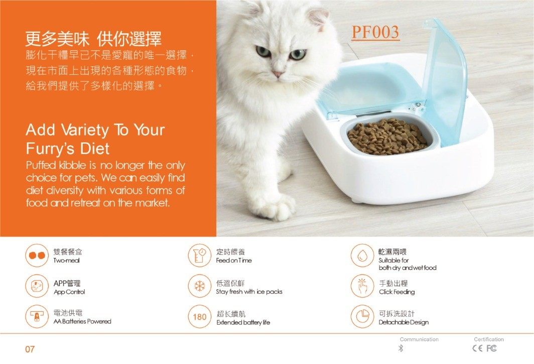 ~Double-meal lunch box~App management~Extremely long battery life~Battery-powered~Manual food dispensing~Low-temperature preservation~Timed feeding~Removable and washable design~Wet and dry feeding