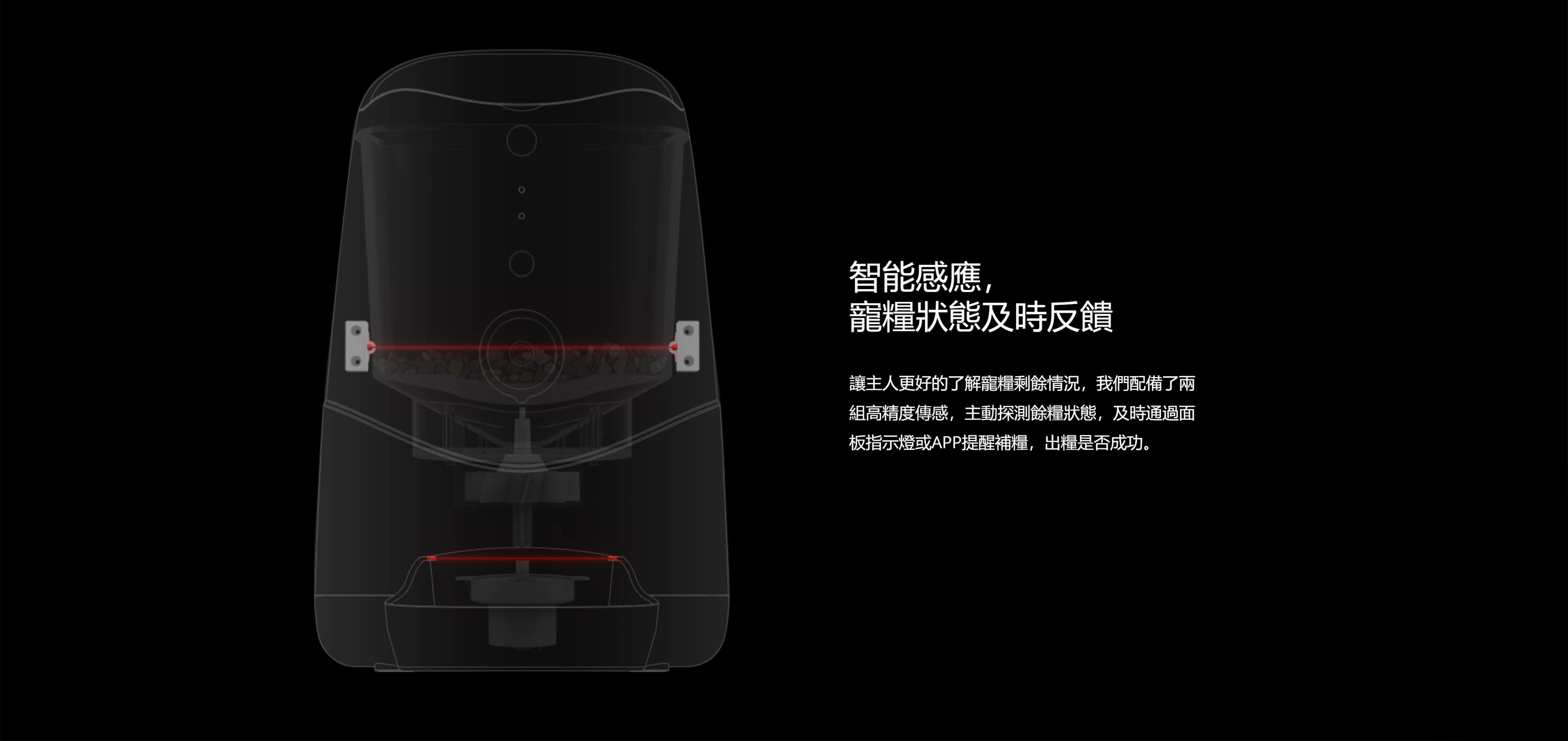 3.7L capacity, remote system management via app, Full HD graphics, dual power supplies, push-button dispensing, two-way voice communication, timed and fixed quantity feeding, food shortage alerts