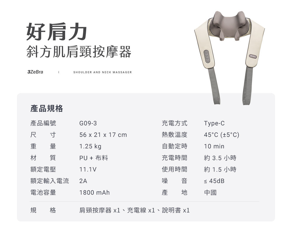 3zebra Trapezius Neck and Shoulder Massager, can be used to massage neck, waist, thighs or calves, designed for Asians, with adjustable heat and intensity