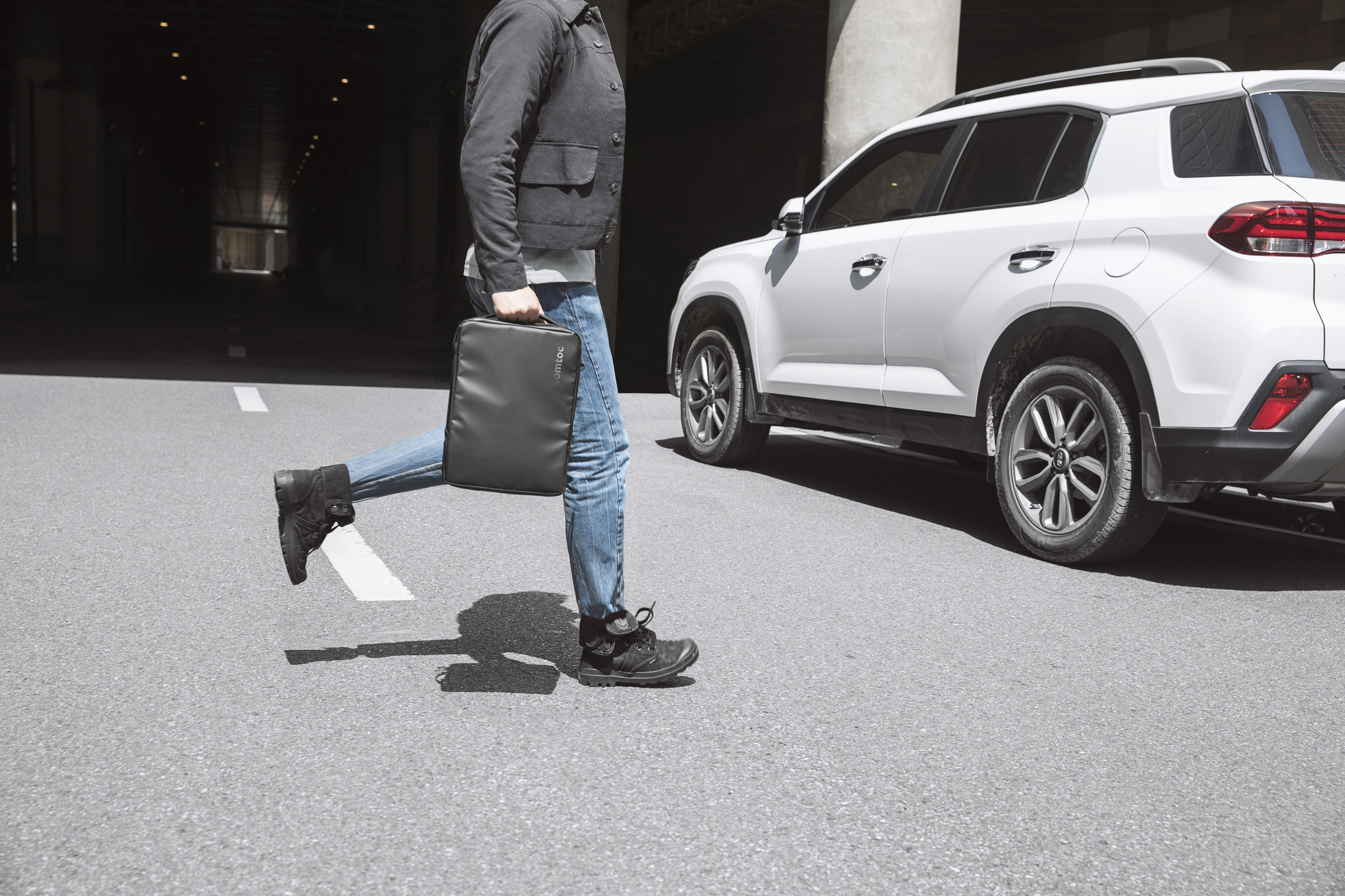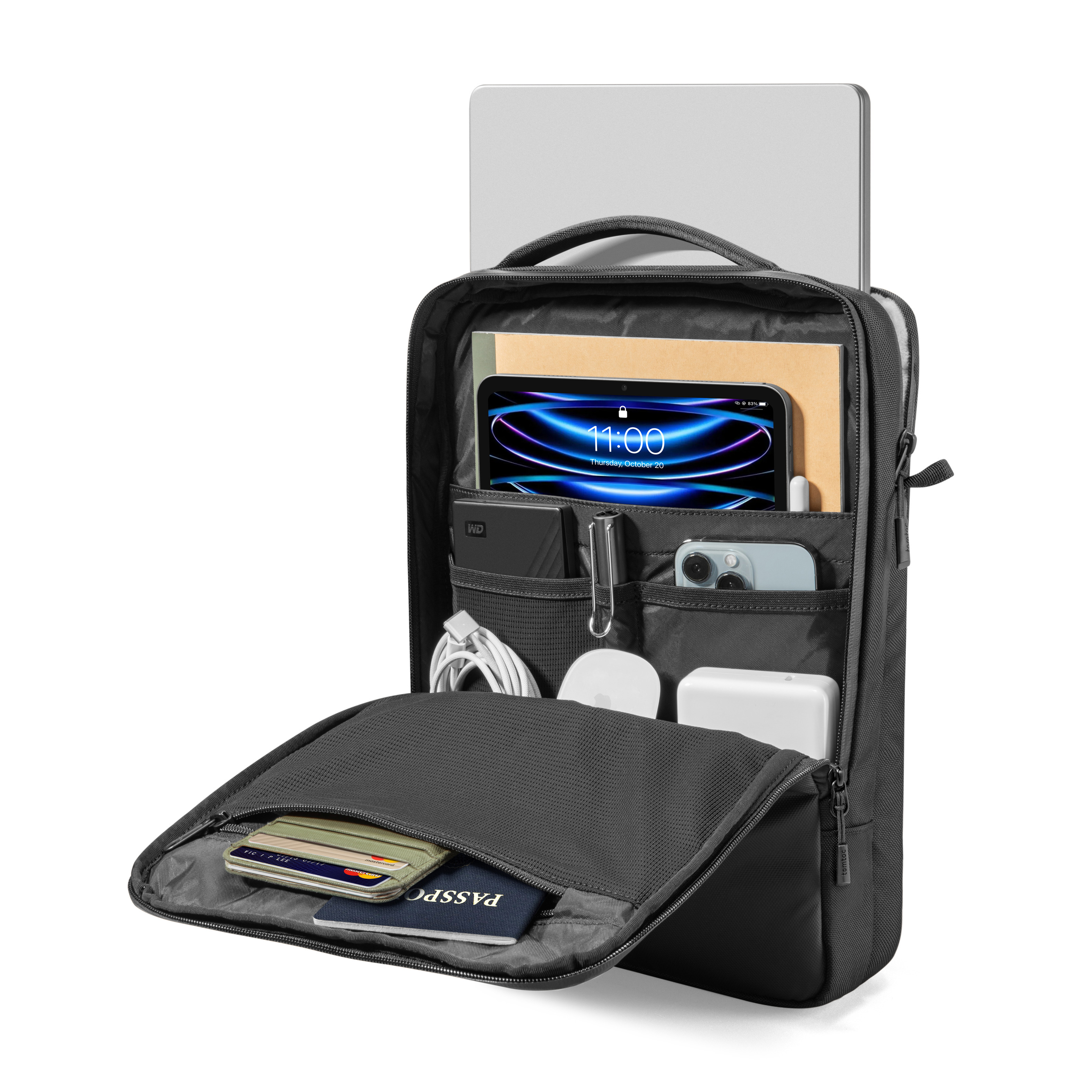 Dual compartments with padded sleeve for laptop and unique front pocket for business essentials