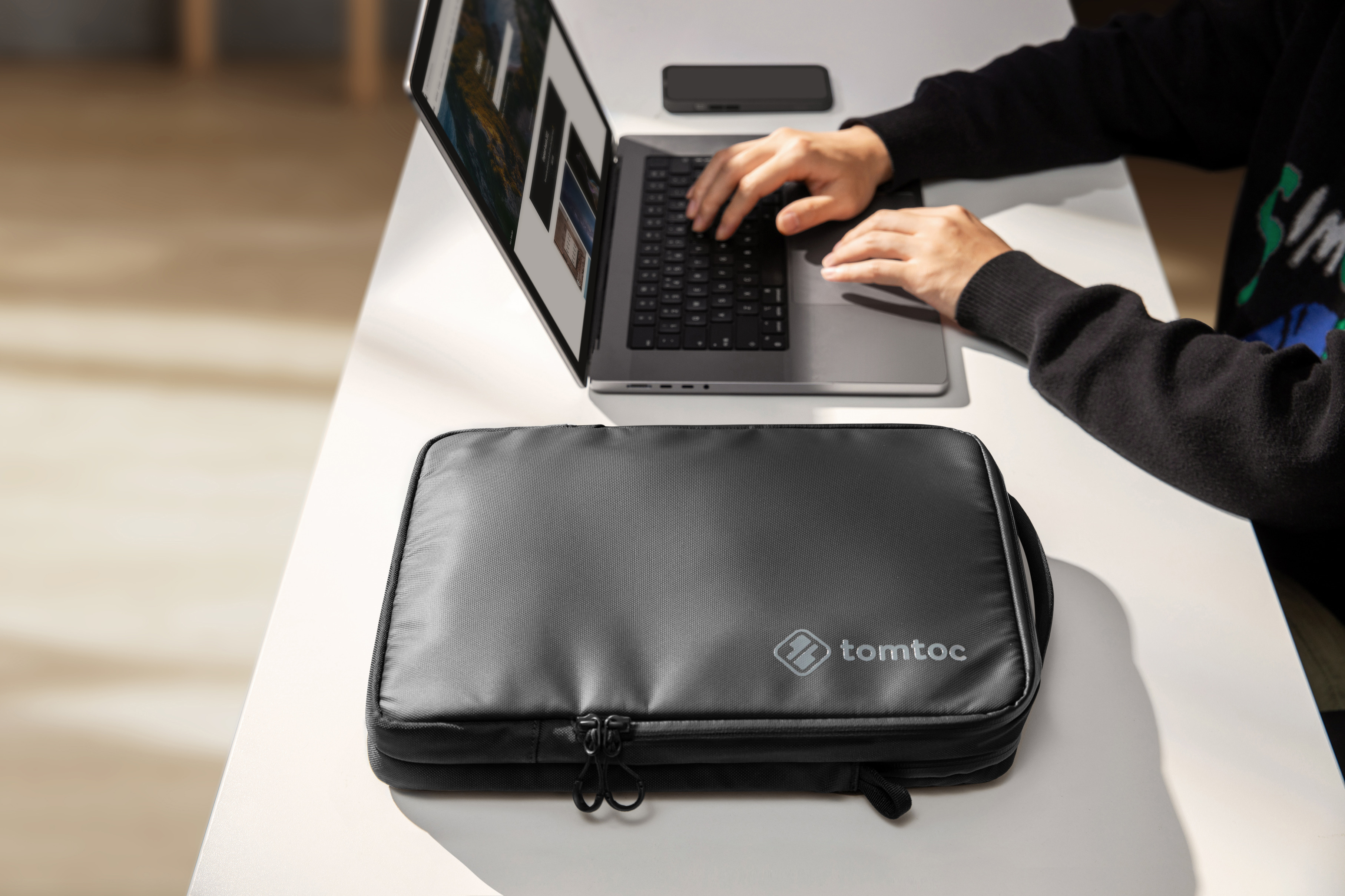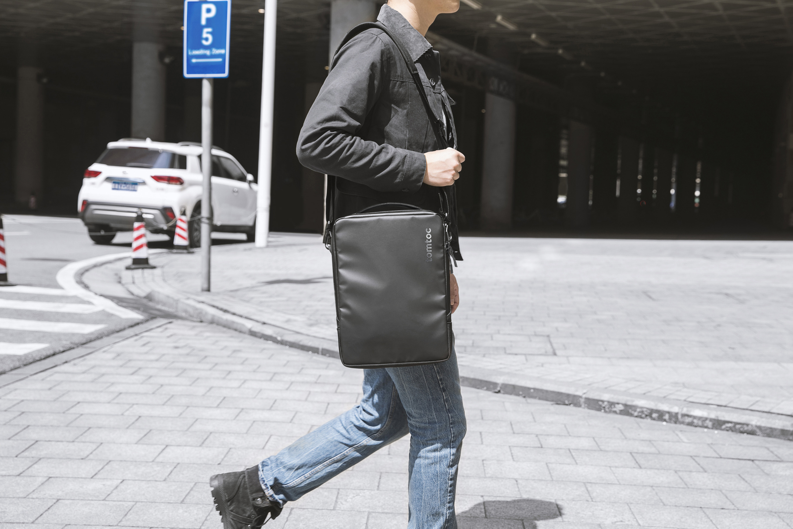 DefenderACE-A04 Laptop Shoulder Bag features a main compartment for your laptop and a unique patented front pocket with lots of pockets for accessories like an iPad, pen, charger, power bank, mouse, and other essentials.