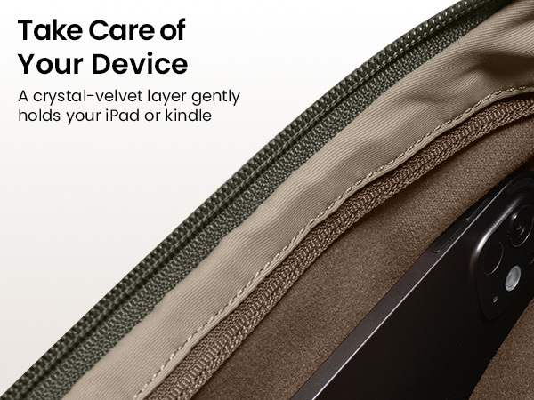 Crystal-velvet layer gently holds your iPad or Kindle.