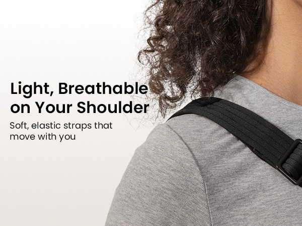 Soft, elastic straps that are light and breathable on your shoulder, moving with you.