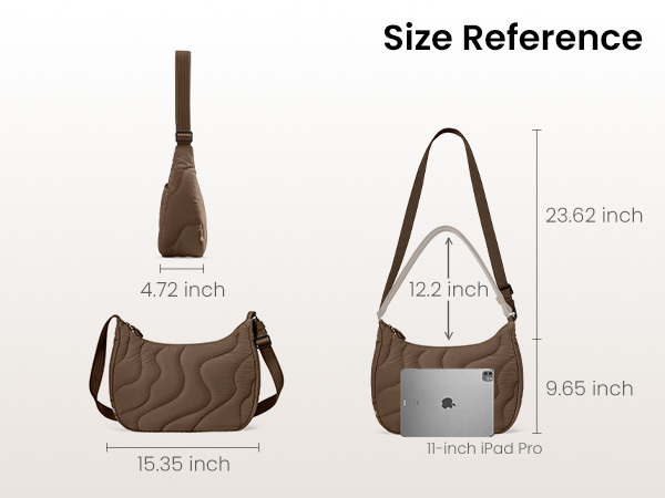 Adjustable shoulder strap ranging from 12.2 to 23.62 inches.
