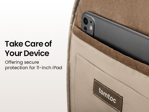 Zippered main compartment and dedicated iPad sleeve provide secure, organized storage