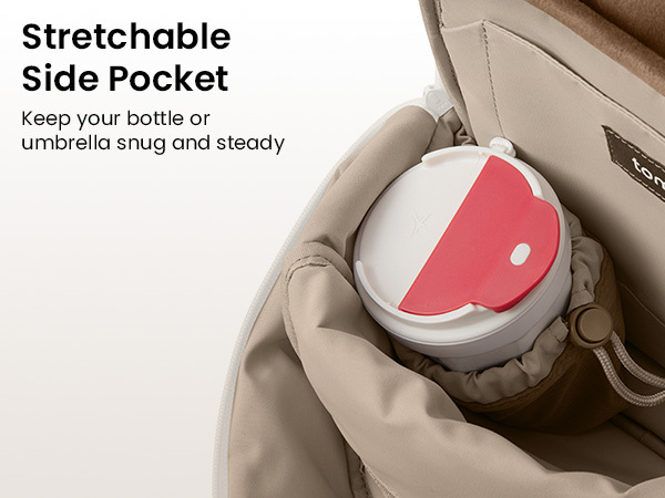 Built-in water bottle holder and rear pocket offer quick access to essentials