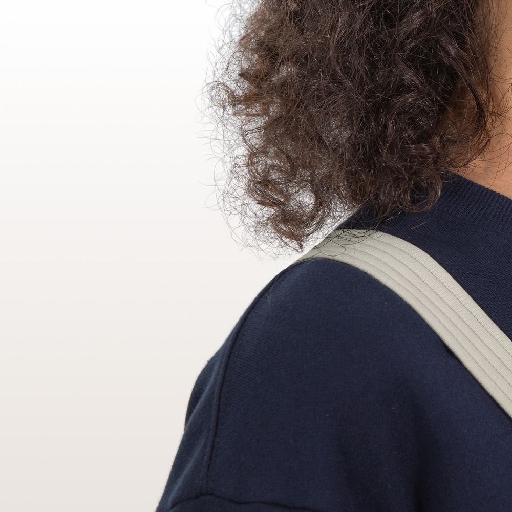 Soft, elastic straps that are light and breathable on your shoulder, moving with you.