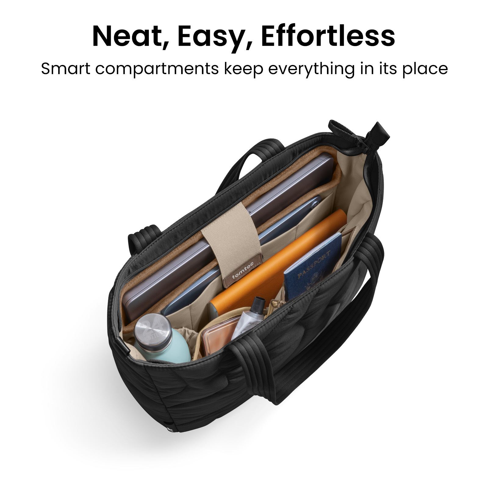 A dedicated laptop compartment, spacious main pocket, and rear sleeve keep your essentials neatly organized