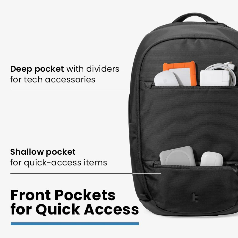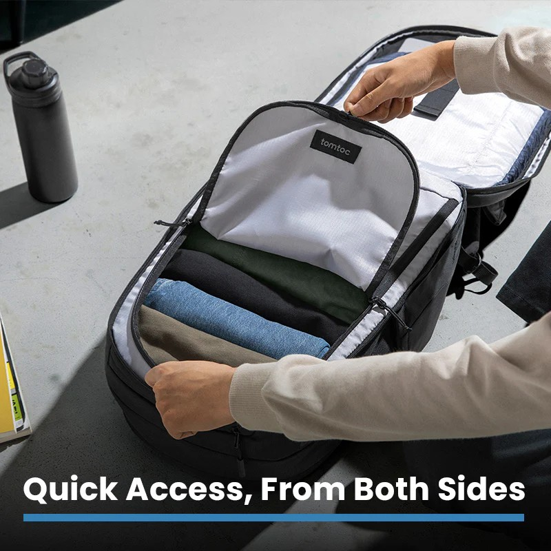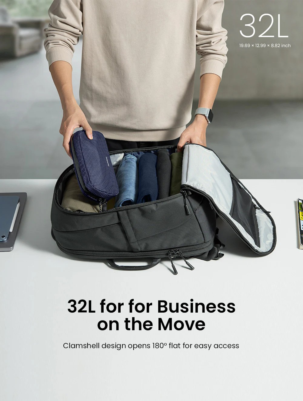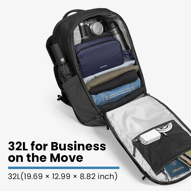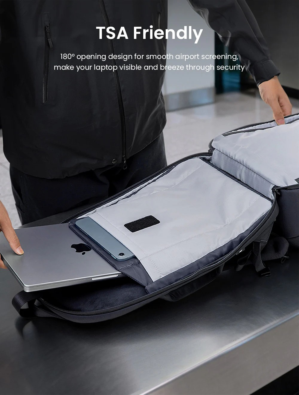 Designed for commuting and business trips, the tomtoc UrbanEX-T77 Laptop Backpack offers 30L of structured storage and dual device protection. Its carry-on-friendly design merges business-ready organization with travel comfort.