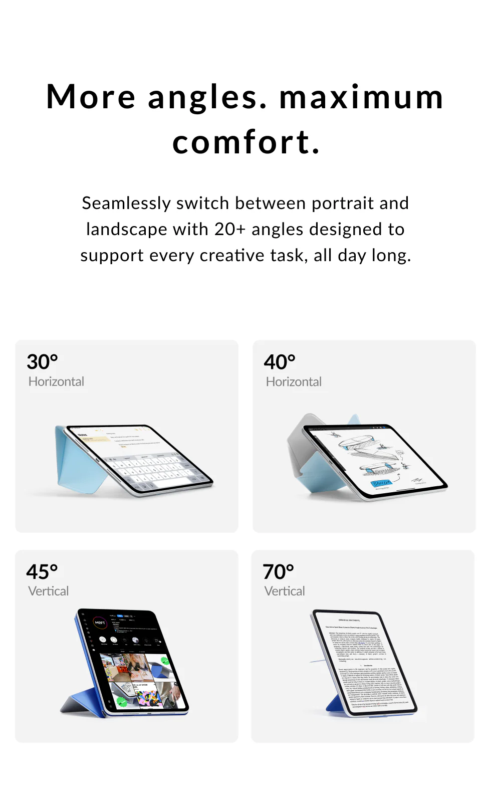 5. 亮點:超過 20 種可調式角度,耐用 MOVAS 材質,模組化筆槽,輕巧便攜,前後保護,自動休眠/喚醒
