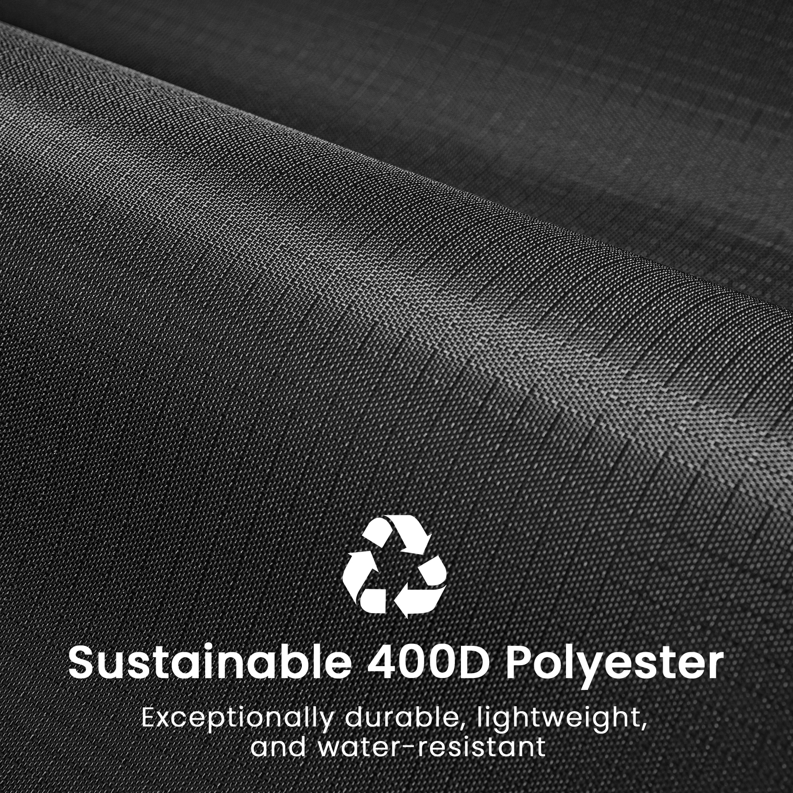 採用耐用、輕盈且防水的 400D 聚酯纖維布料。